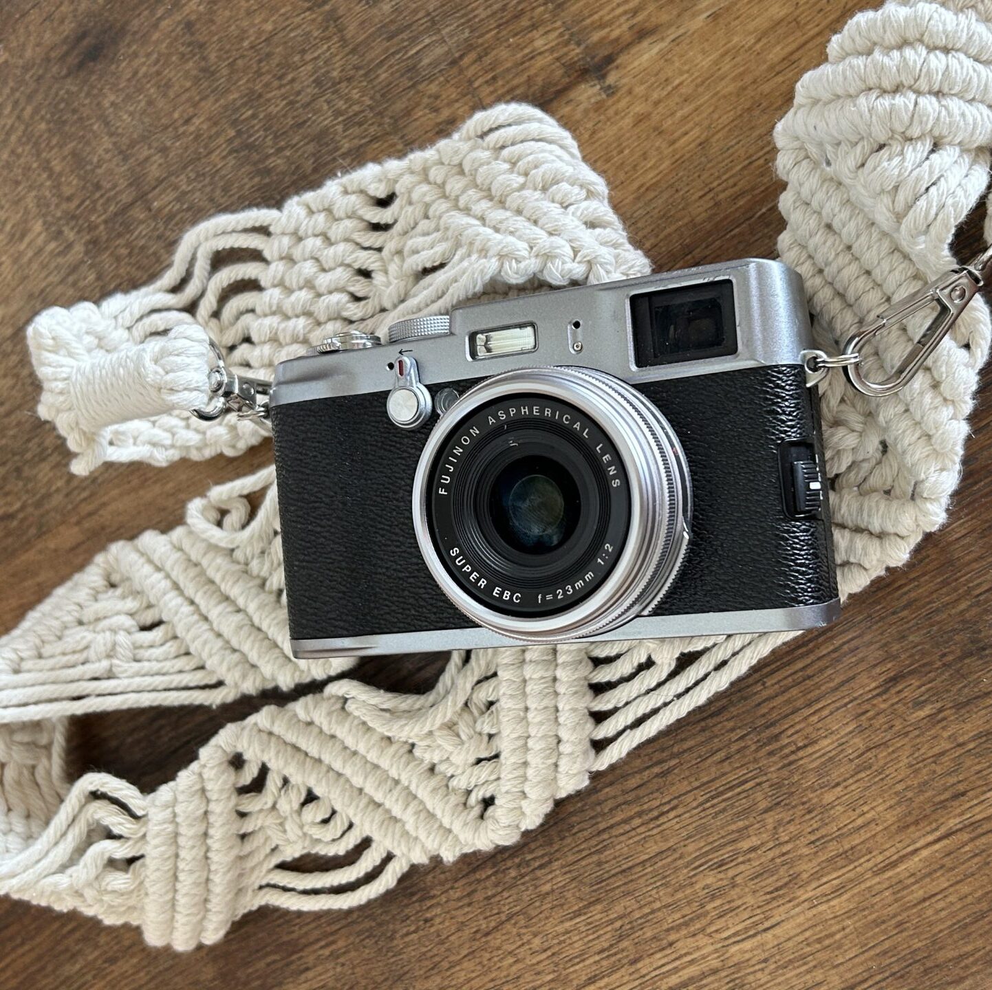 Strahlend und stilvoll: Dieser handgefertigte Makramee-Kameragurt in zarten beige bringt Stil in deine Fotografie. Gefertigt aus 100 % weicher Baumwolle, bietet er optimalen Tragekomfort und sicheren Halt. Die robusten Metallverschlüsse sorgen für eine zuverlässige Befestigung. Perfekt für Fotografen, die Funktionalität mit einem Hauch von Individualität kombinieren möchten.